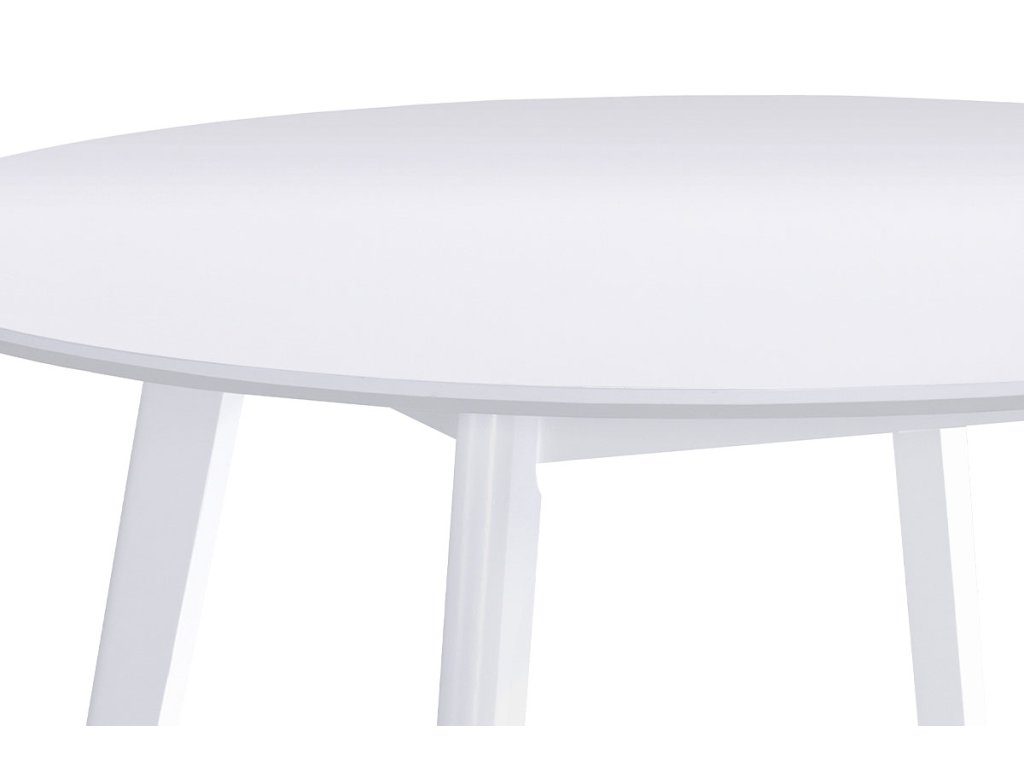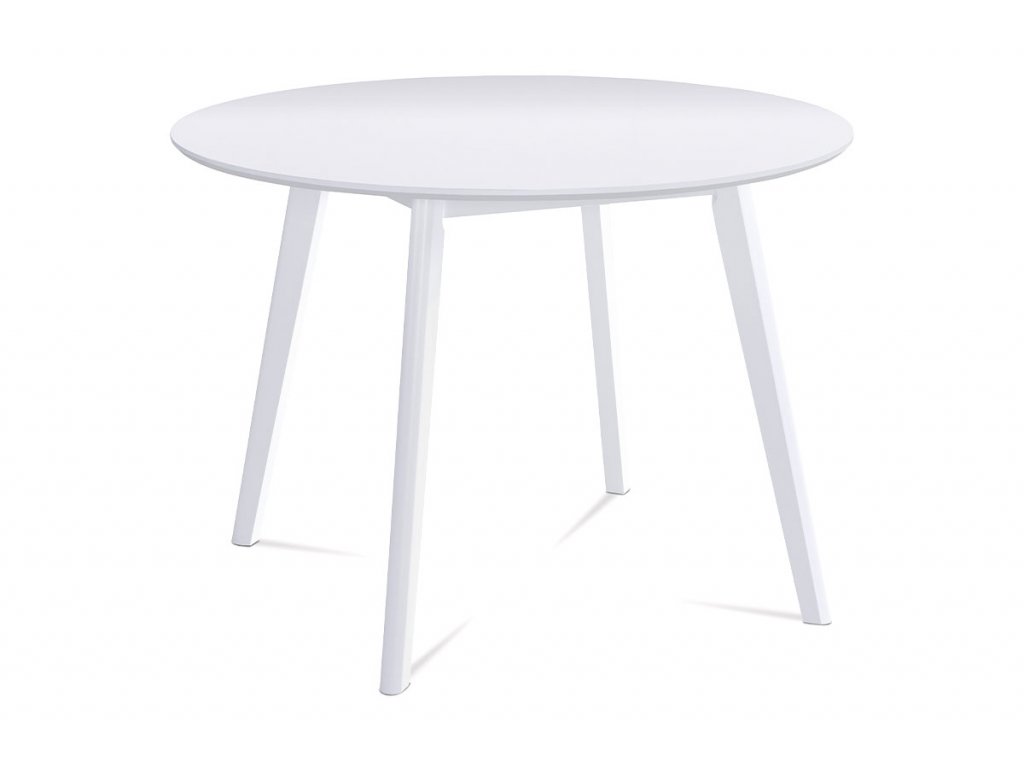 Designový jídelní stůl s kulatou deskou v bílé barvě.
