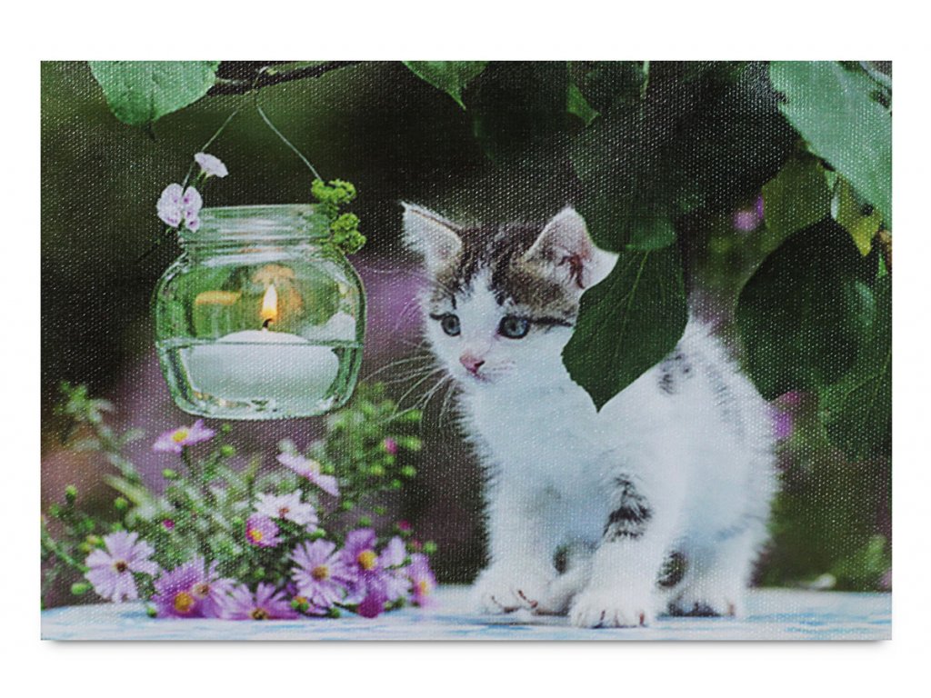 Sada 2 ks obrazů: Kočka s LED světlem a stojánkem 15 x 20 cm
