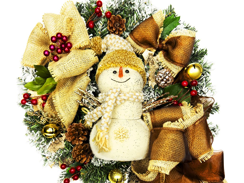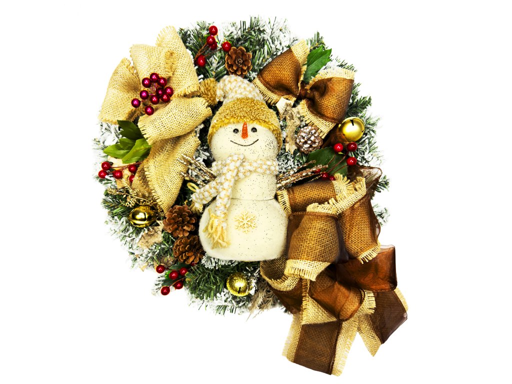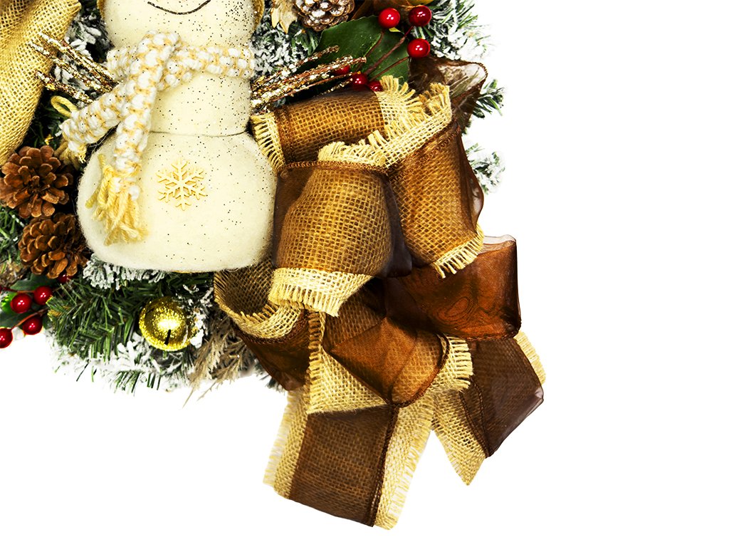 Tento vánoční věnec kombinuje přírodní kouzlo s hravou postavičkou sněhuláka a je dokonalým doplňkem pro Váš sváteční interiér.