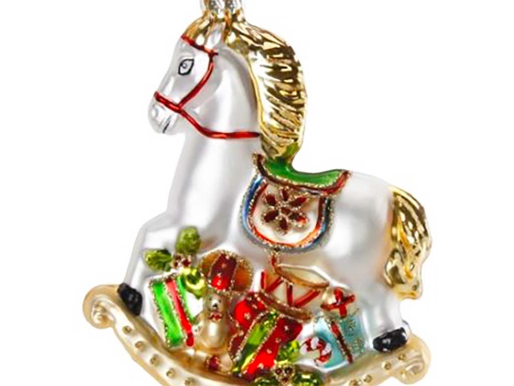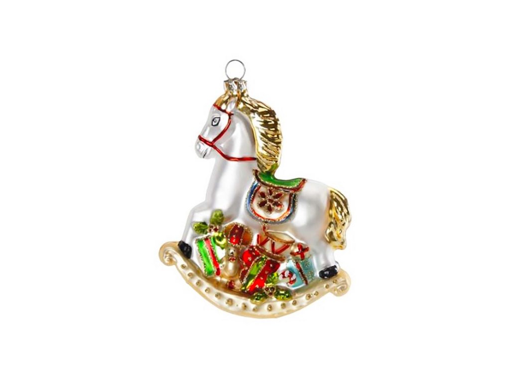 Vánoční ozdoba v podobě barevného koníka v matném provedení.