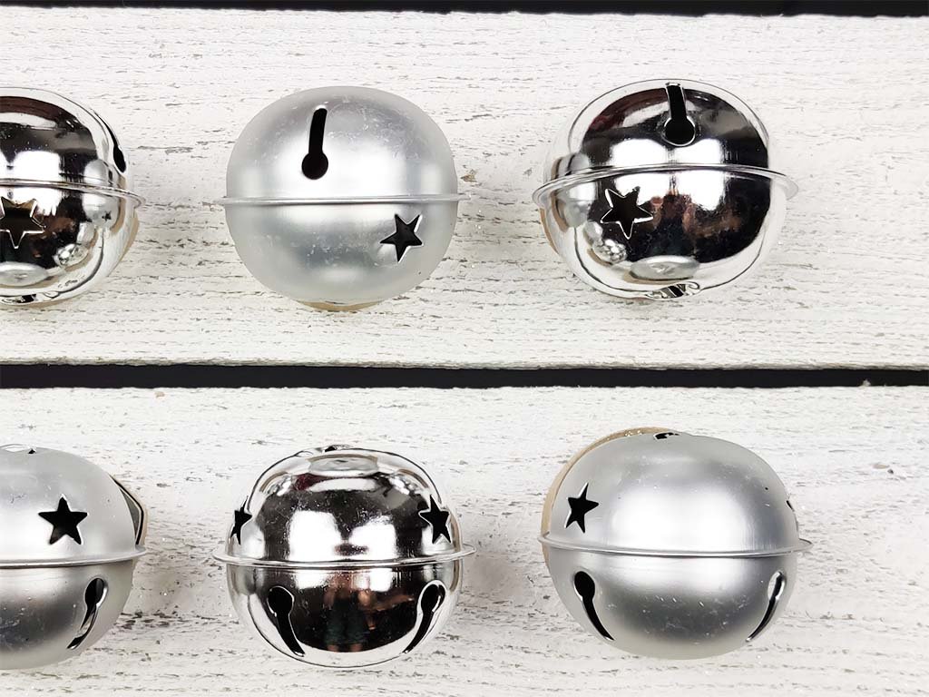 Sada 12 ks ozdob: Ozdoby rolničky stříbrné 6 cm