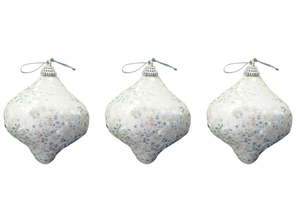 Sada 3 ks dekorací: Baňka s glitery bílá 6 cm