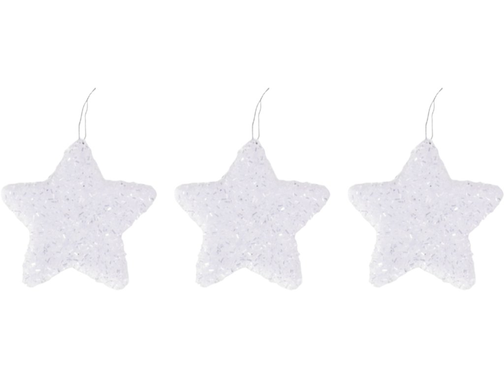 Sada 3 ks dekorací: Hvězda s glitery bílá 10 cm
