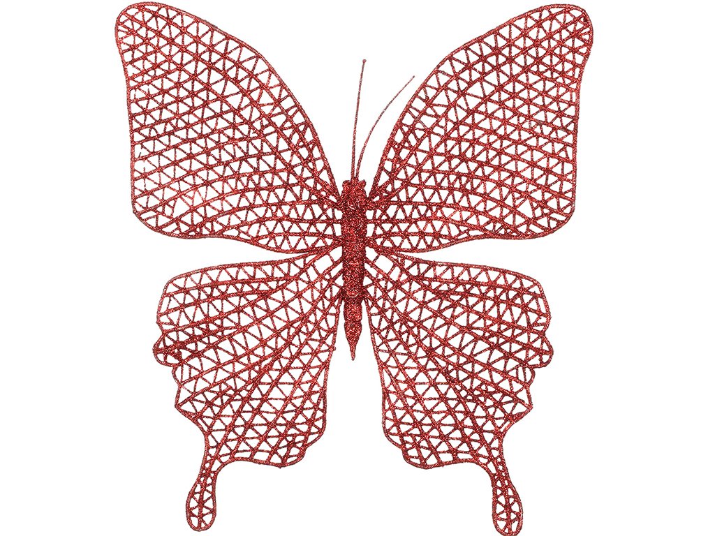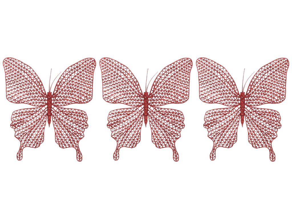 Sada 3 ks ozdob: Motýl na klipu červený 20 x 19,5 cm