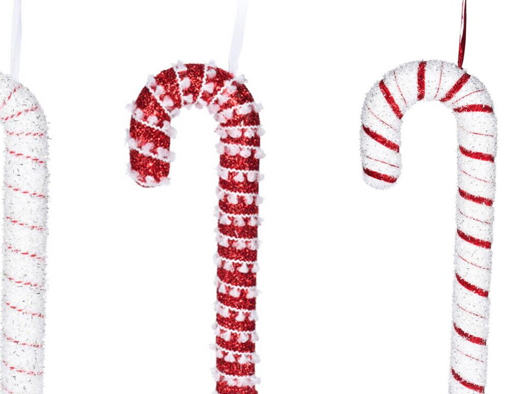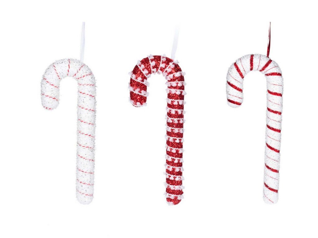 Sada 3 ks ozdob v červeno bílém provedení ve tvaru cukrových hůlek.