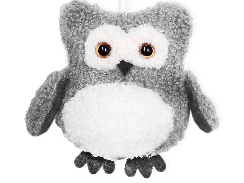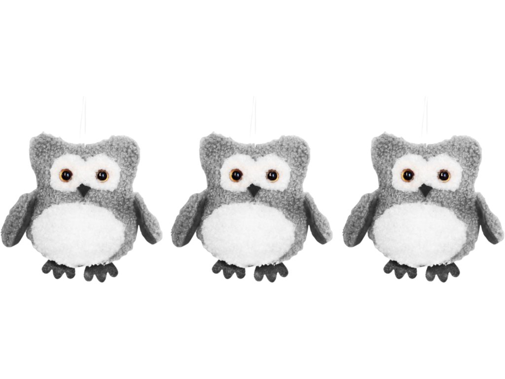 Sada 3 ks ozdob: Sovička textilní šedá 10 x 11 cm