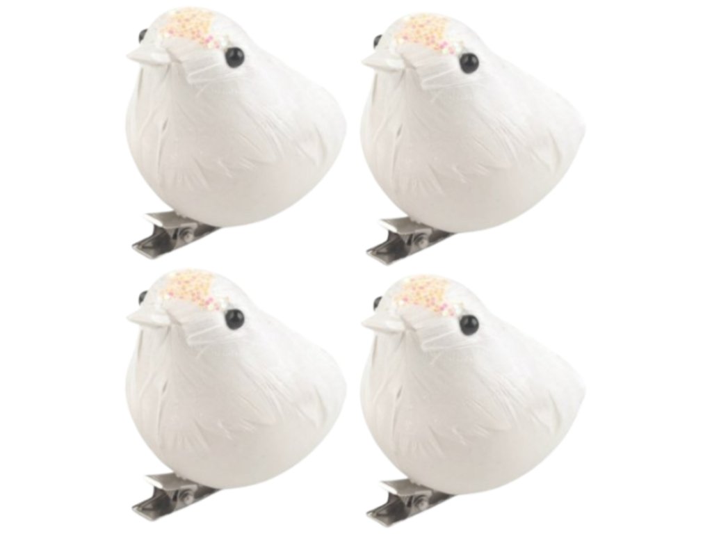 Sada 4 ks ozdob: Ptáčci na klipu bílí 5 x 15 cm