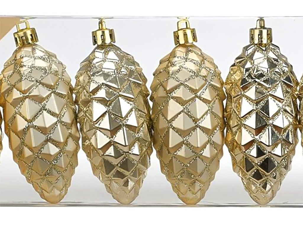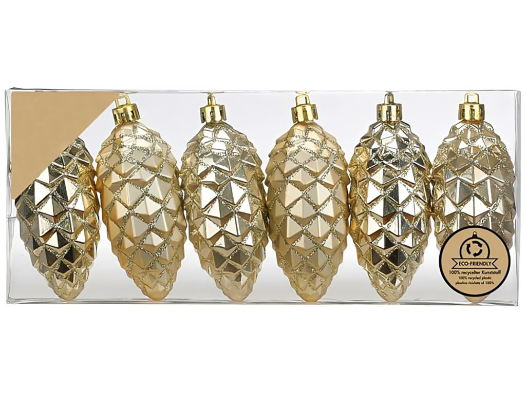 Sada 6 ks ozdob: Ozdoby šišky champagne mix 9 cm