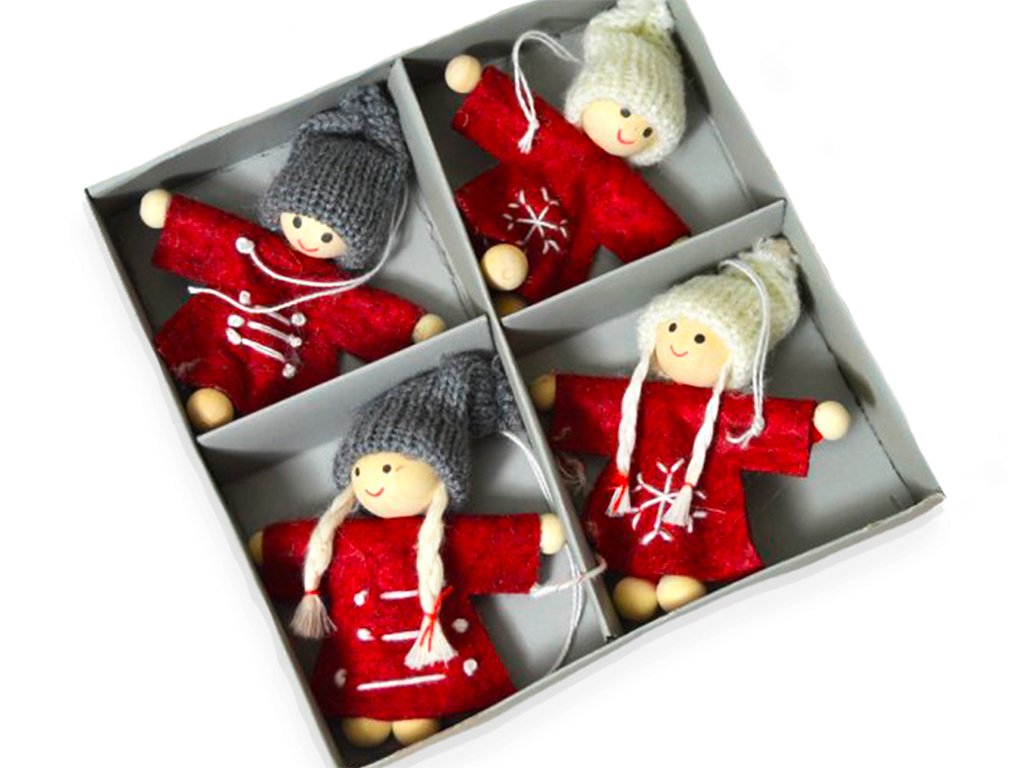 Sada 8 ks textilních postaviček s očkem pro snadní zavěšení kdekoliv v interiéru.