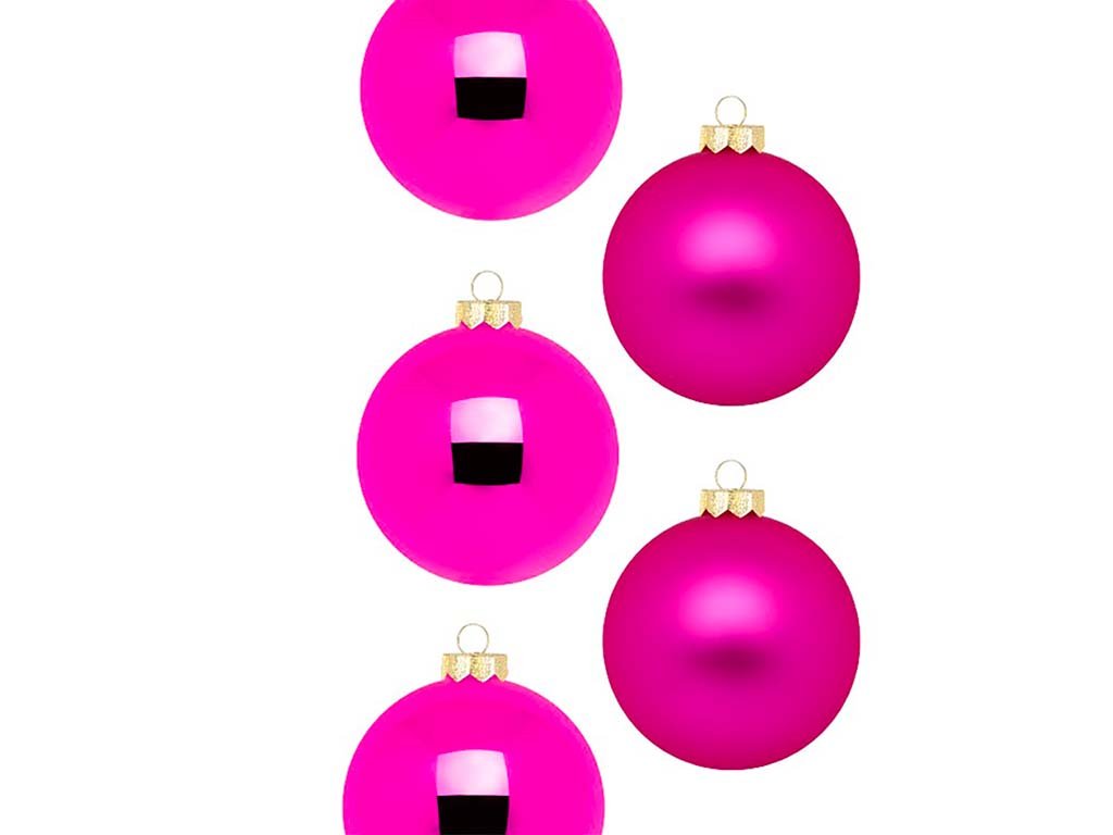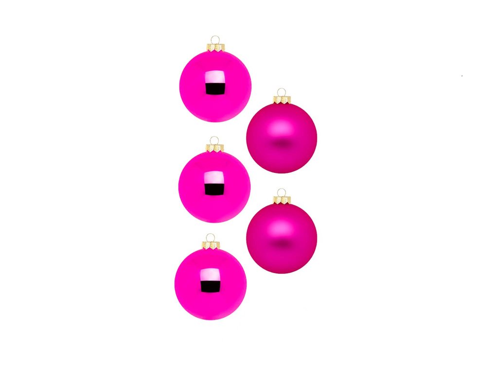 12 ks skleněných ozdob ve výrazné fuchsiové růžové barvě.