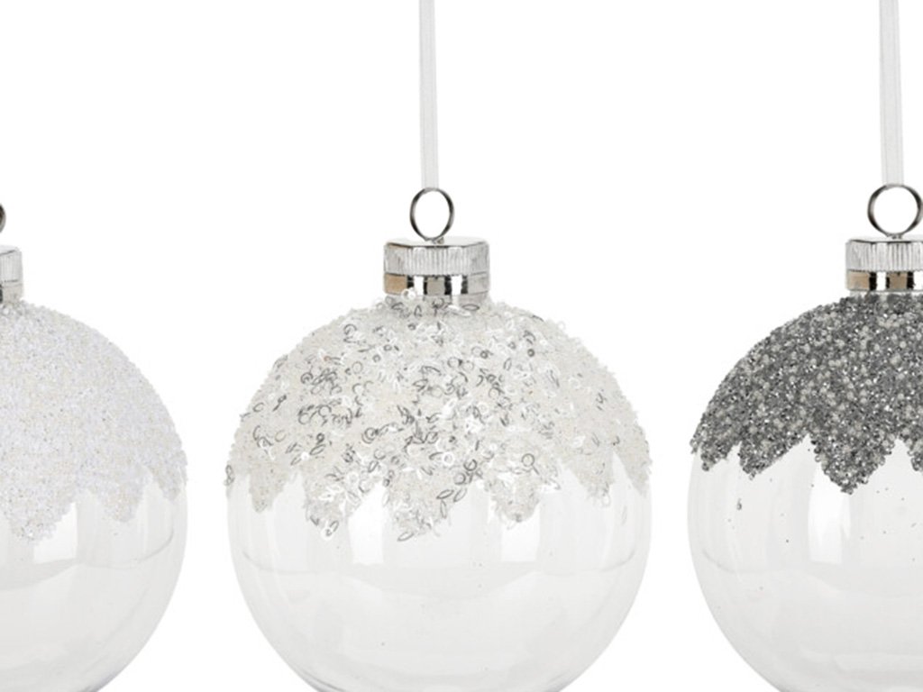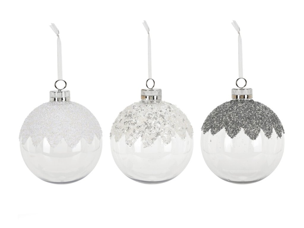 Sada 3 ks ozdob: Ozdoby kulaté čiré s flitry mix 20 cm