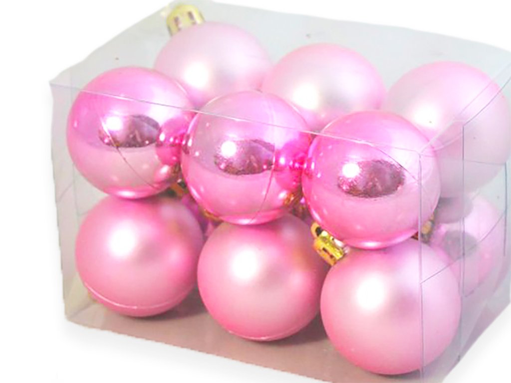 Sada 36 ks růžových ozdob v matném a lesklém provedení.