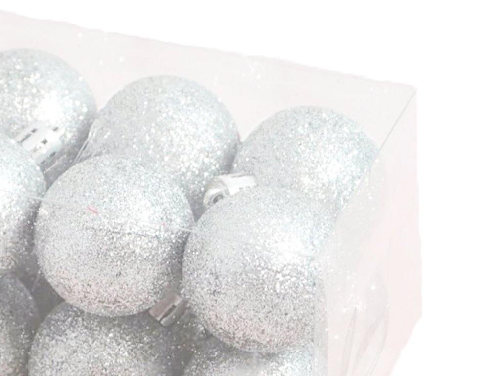Sada 36 ks třpytivých stříbrných ozdob z plastu.