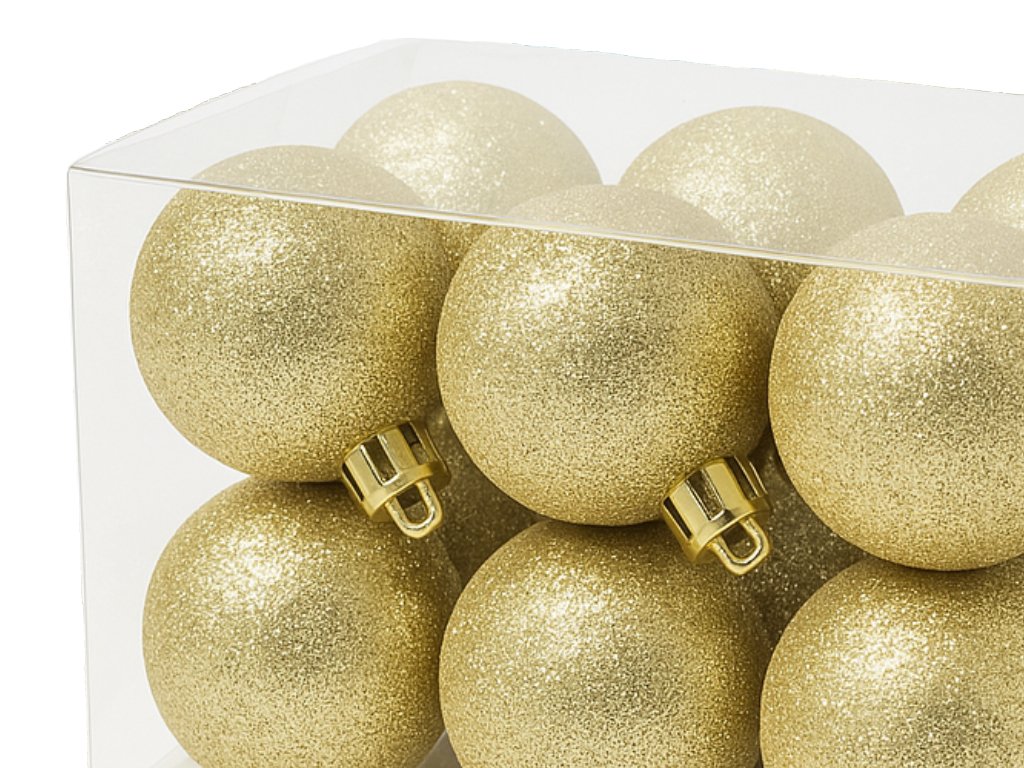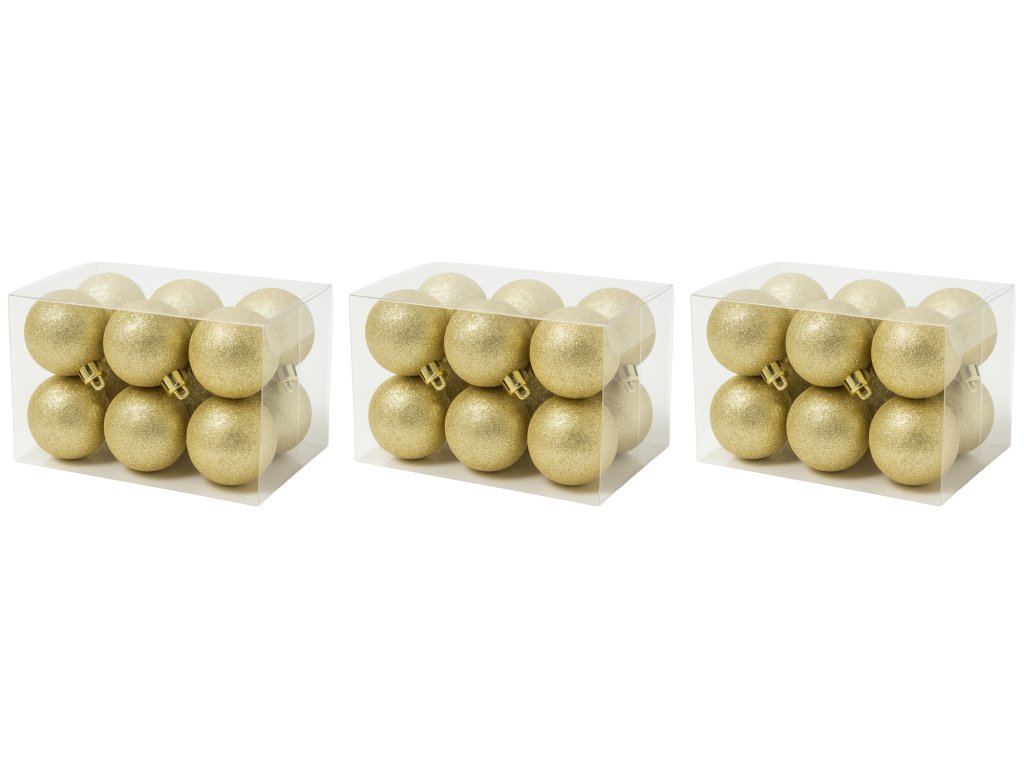 Sada 36 ks zlatých vánočních ozdob z plastu.