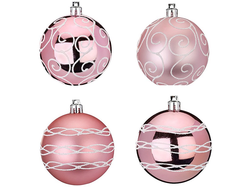 Sada 4 ks ozdob: Ozdoby kulaté růžové s dekorem mix 8 cm