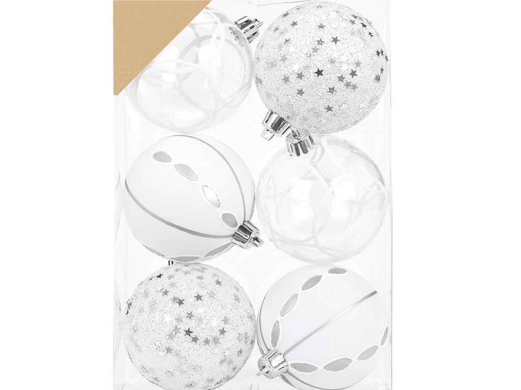 Sada 6 ks ozdob: Ozdoby bílé mix 8 cm