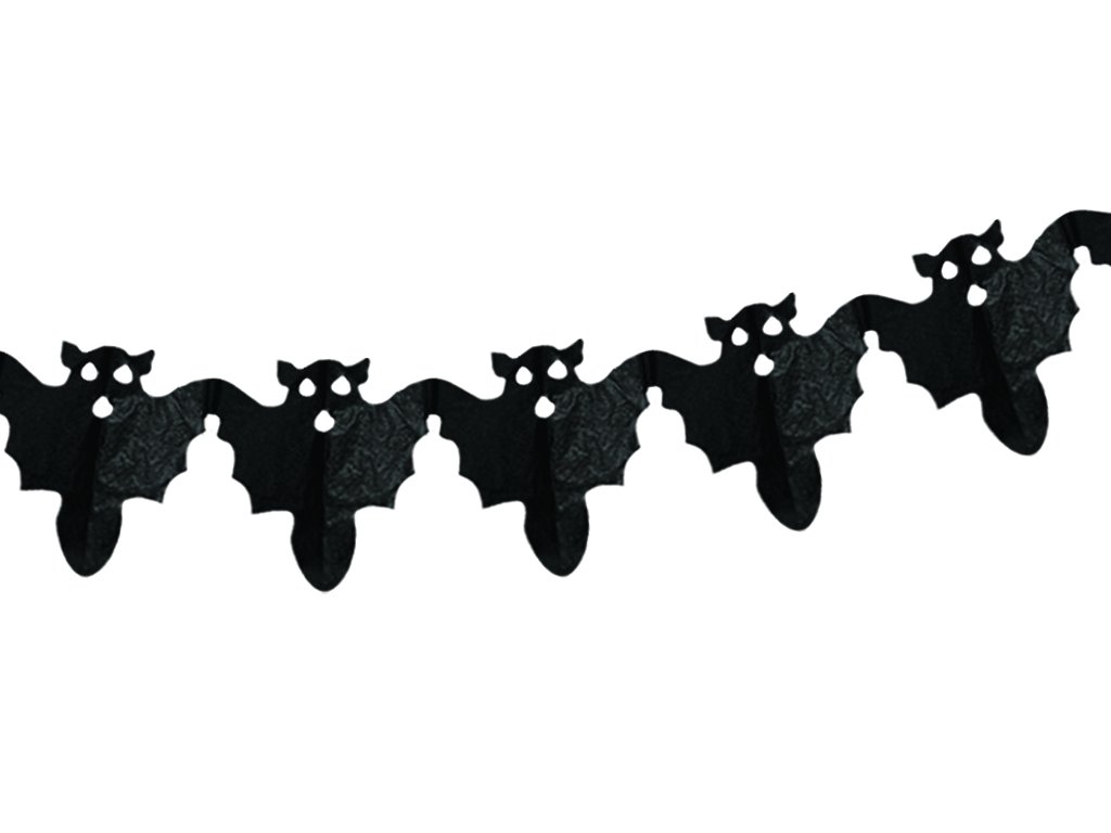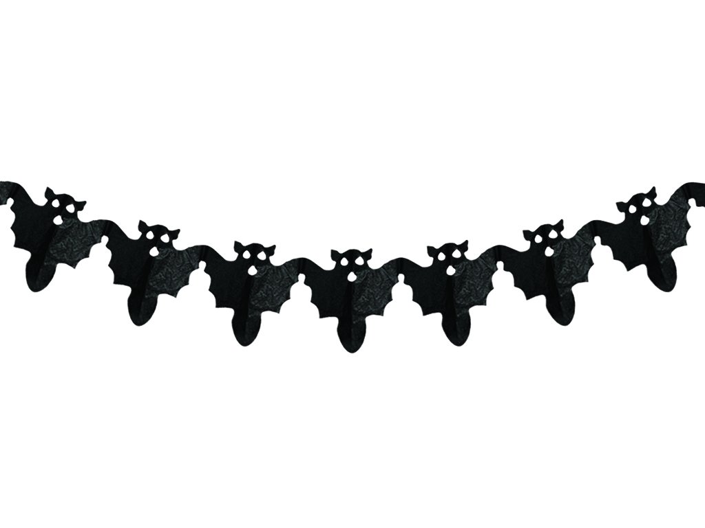 Papírový řetěz s netopýry v černé barvě jako dokonalý doplněk pro oslavy Halloweenu.