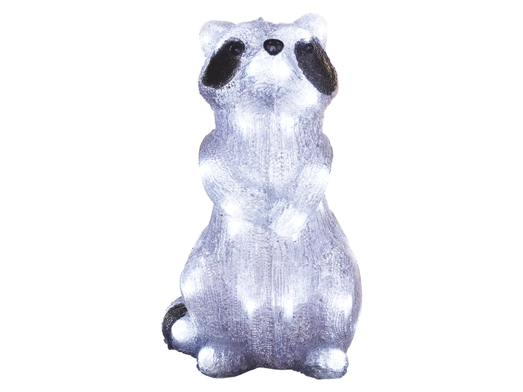 Dekorace je vyrobena z pevného akrylového materiálu a svítí studenou bílou barvou.