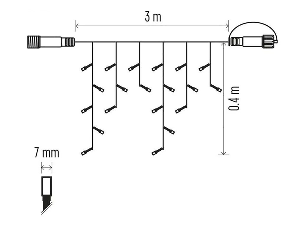 Vánoční světelný řetěz s převisy TEPLÁ BÍLÁ 3 x 0,9 m - PROFI - spojovací