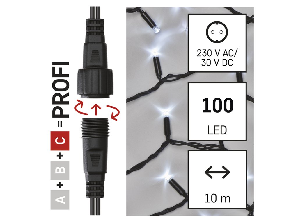 Vánoční světelný řetěz STUDENÁ BÍLÁ 10 m - PROFI - spojovací