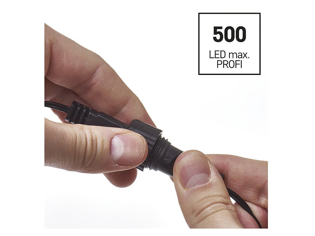 Řetěz PROFI má oproti spojovacímu řetězu z řady STANDARD širší kabel, na kterém jsou umístěny jednotlivé LEDky.