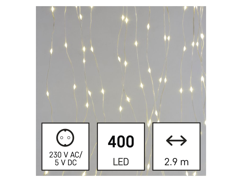 ZAPŮJČENÍ - Vánoční světelný řetěz záclona TEPLÁ BÍLÁ 2,9 x 2 m