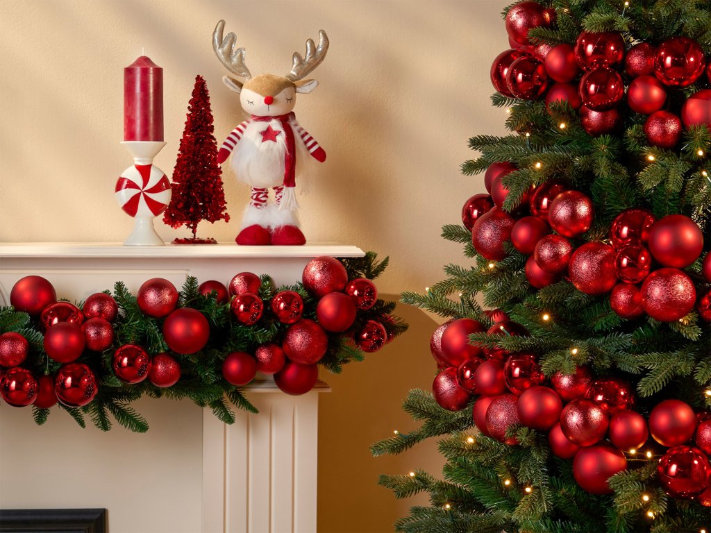 Ozdobená girlanda s ozdobami v různých velikostech dodá Vašemu domovu slavnostní atmosféru.