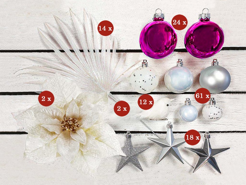 | Barva vánočních ozdob: | bílá, růžová, stříbrná |