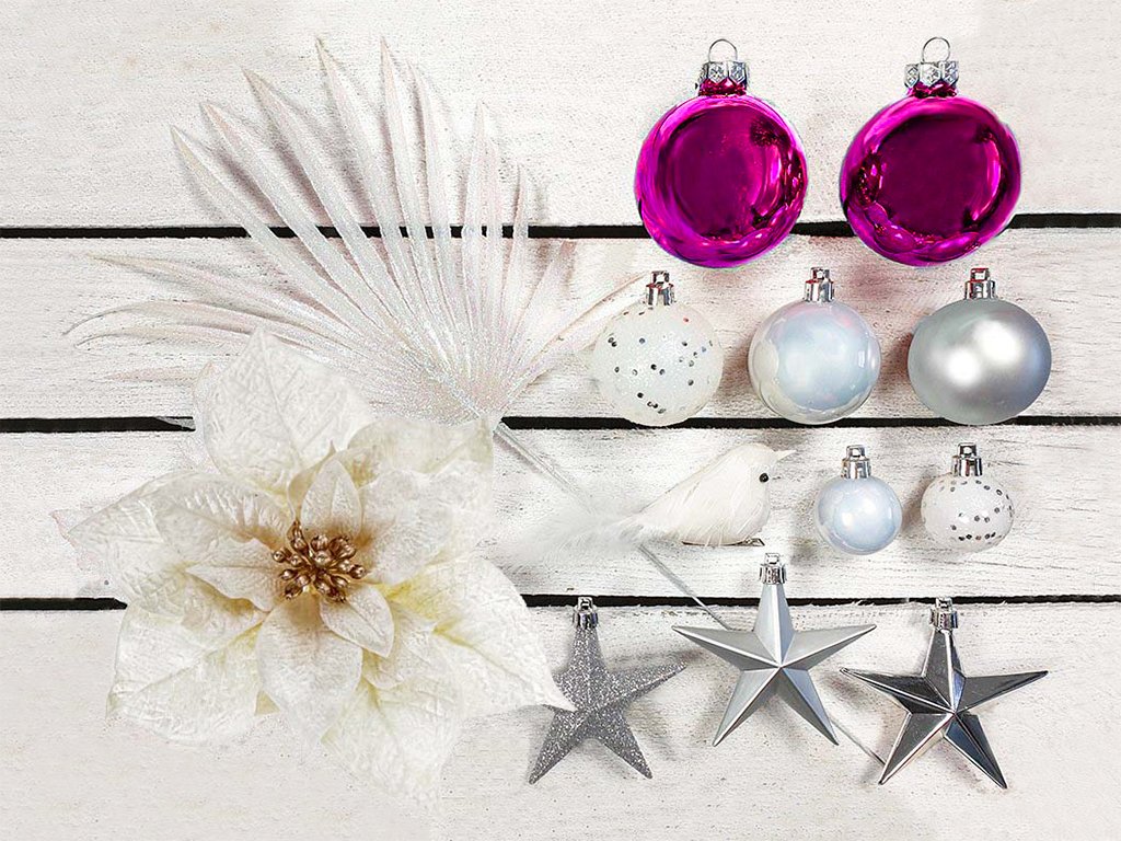 Barva vánočních ozdob: | bílá, růžová, stříbrná |