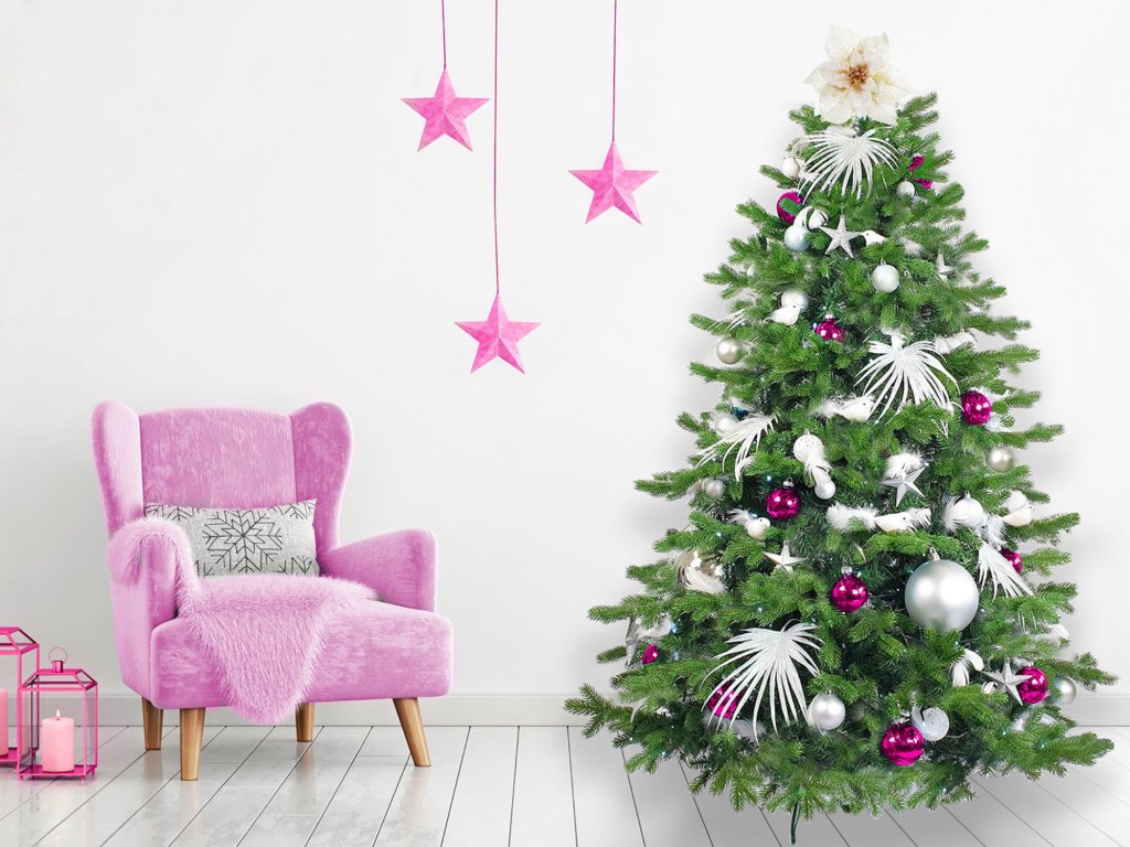 ZAPŮJČENÍ - Ozdobený stromeček POLÁRNÍ RŮŽOVÁ II 210 cm