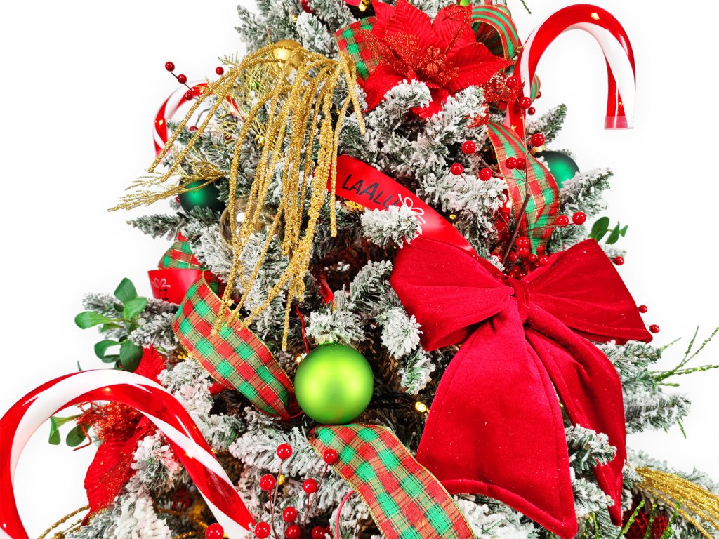 Stromečku vévodí tradiční vánoční barvy - červená, zelená a zlatá, které vytvářejí nezaměnitelnou atmosféru radosti.