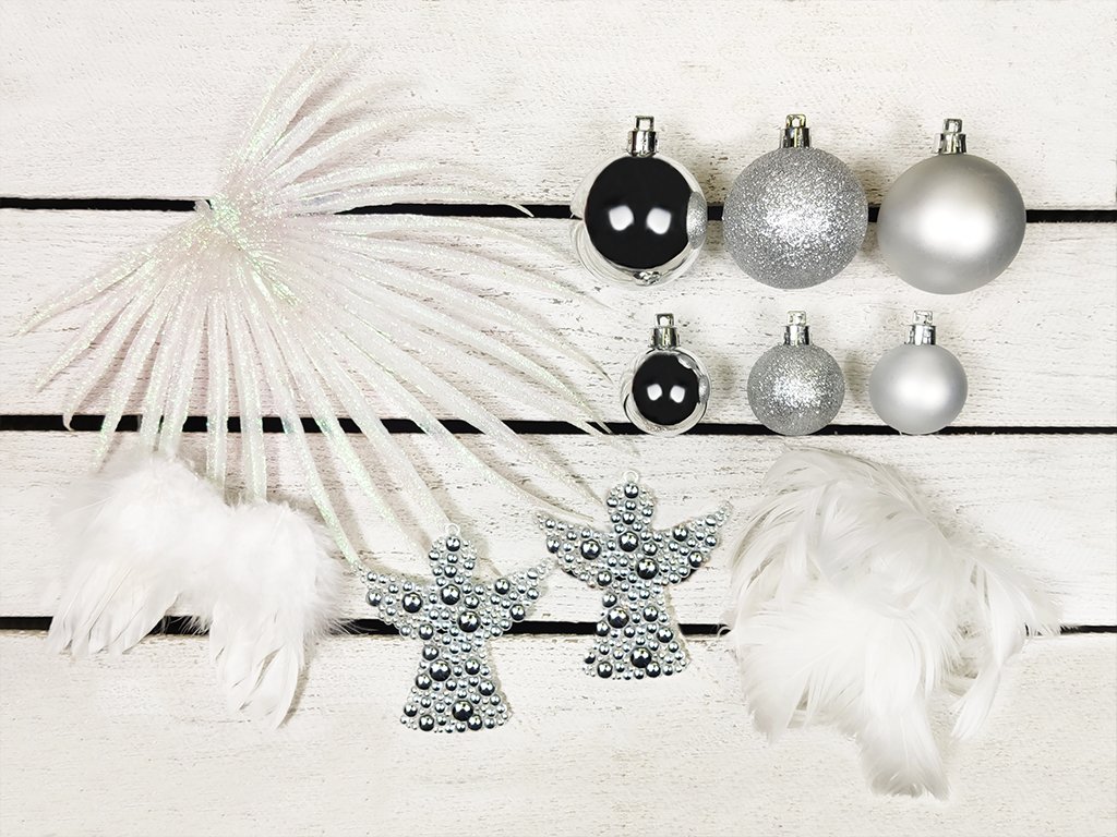 | Barva vánočních ozdob: | bílá, stříbrná |