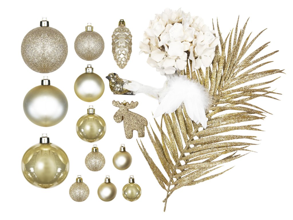| Barva vánočních ozdob: | bílá, champagne, stříbrná |