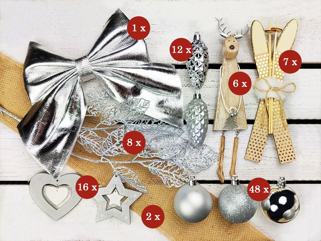 | Barva vánočních ozdob: | bílá, hnědá, stříbrná |