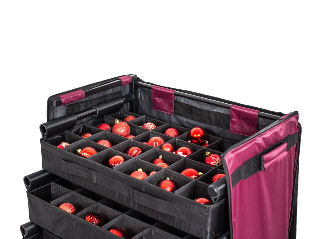 Součástí boxu jsou vytahovací šuplíky, ve kterých najdete praktické rozdělovníky pro jednotlivé ozdoby.