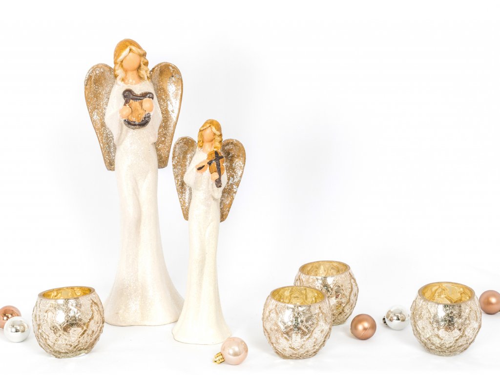 ZAPŮJČENÍ - Sada 6 ks dekorací: Anděl velký a malý, svícny zlaté