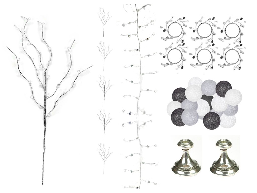 Stříbrná sada s kamínky určená k dekorování sváteční tabule a interiéru přinese do Vašeho domova jiskřivý zimní lesk.