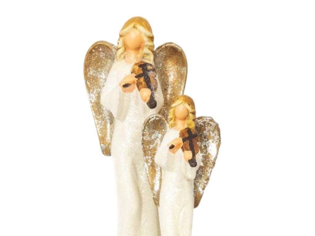ZAPŮJČENÍ - Sada 2 ks dekorací: Dva třpytiví andělíčci 25 a 33 cm
