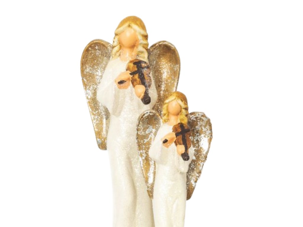 2 x andělíčci 25 cm a 33 cm, barva champagne, materiál keramika