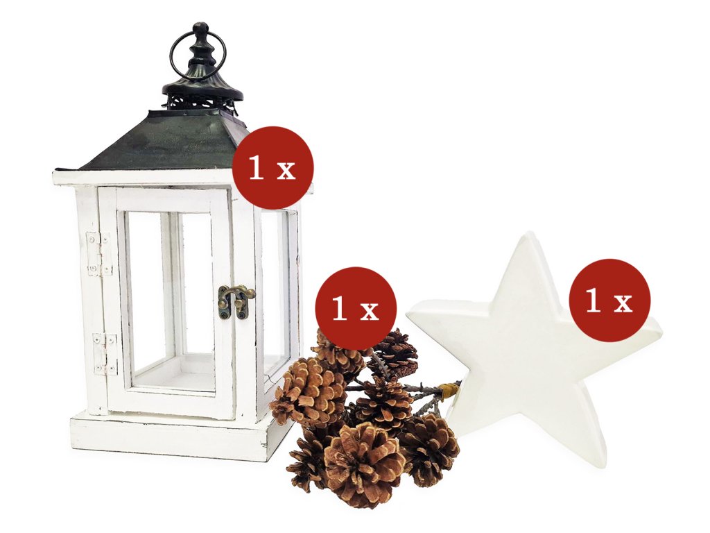 Naše sada dekorací je ideální volbou – lucerna a motiv hvězdy patří mezi oblíbené prvky, které nikdy nevyjdou z módy.