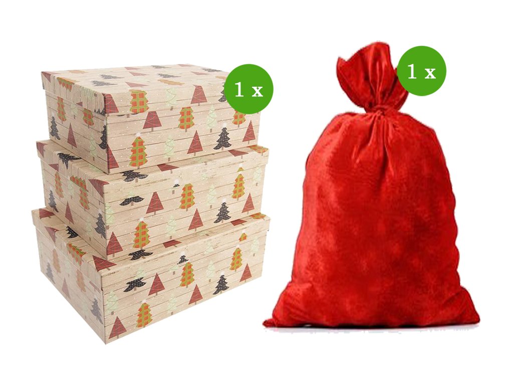 ZAPŮJČENÍ - Sada 4 ks dekorací: Dekorační dárky a pytel Santy