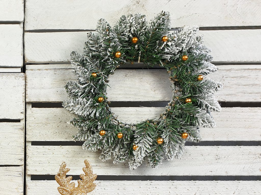 1 x ozdobený věnec zasněžený 30 cm - RUČNÍ VÝROBA