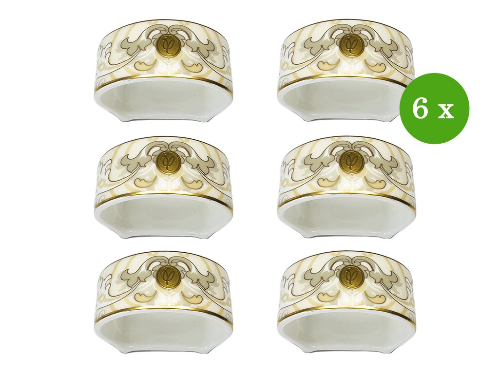 ZAPŮJČENÍ - Sada 6 ks dekorací: Kroužky na ubrousky champagne s dekorem