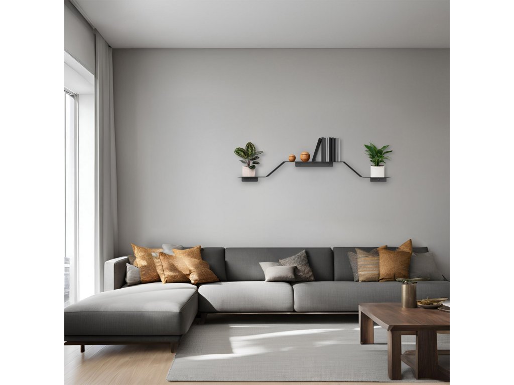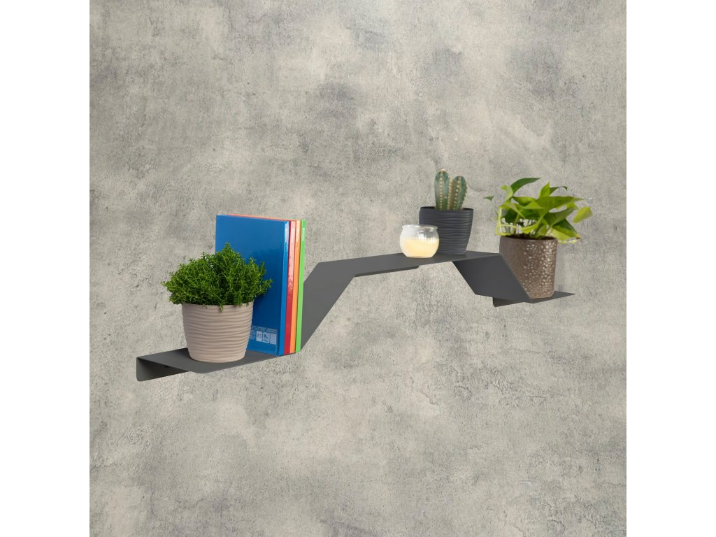 Tato unikátní polička v šedé barvě z práškově lakované 2mm silné oceli přináší do každého prostoru jedinečnou asymetrii a hravost.