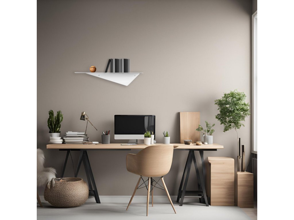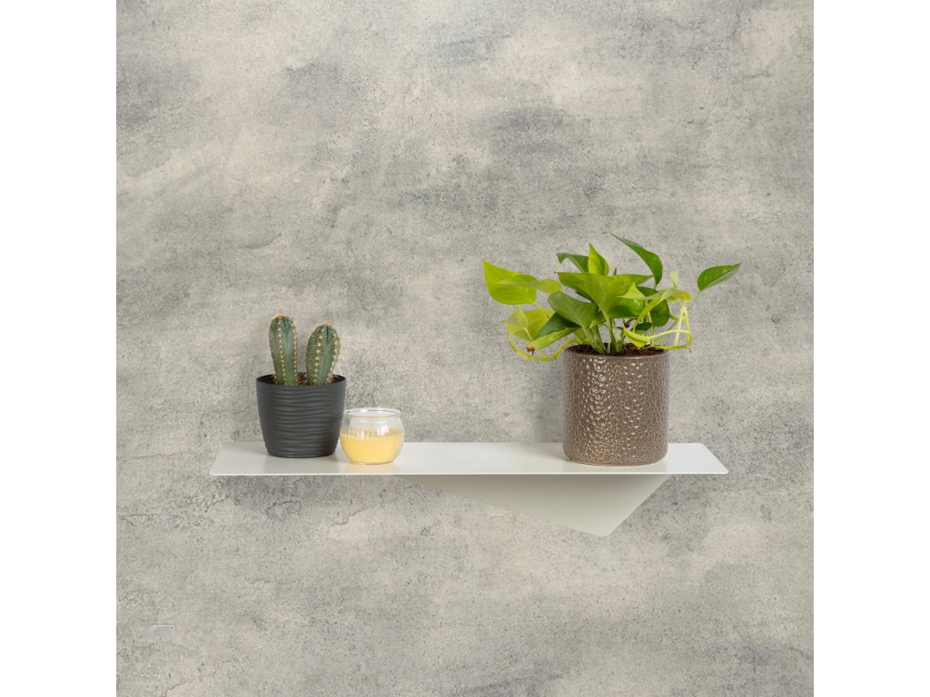 Tato jedinečná polička v bílé barvě z práškově lakované 2mm silné oceli vyniká svou originalitou a asymetrickým designem, který přináší do prostoru neotřelý prvek elegance.