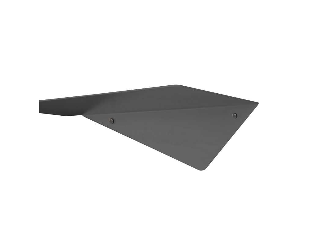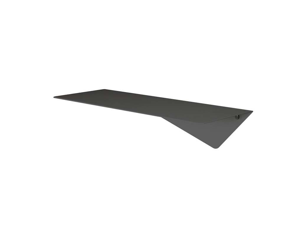 Tato jedinečná polička v černé barvě z práškově lakované 2mm silné oceli vyniká svou originalitou a asymetrickým designem, který přináší do prostoru neotřelý prvek elegance.