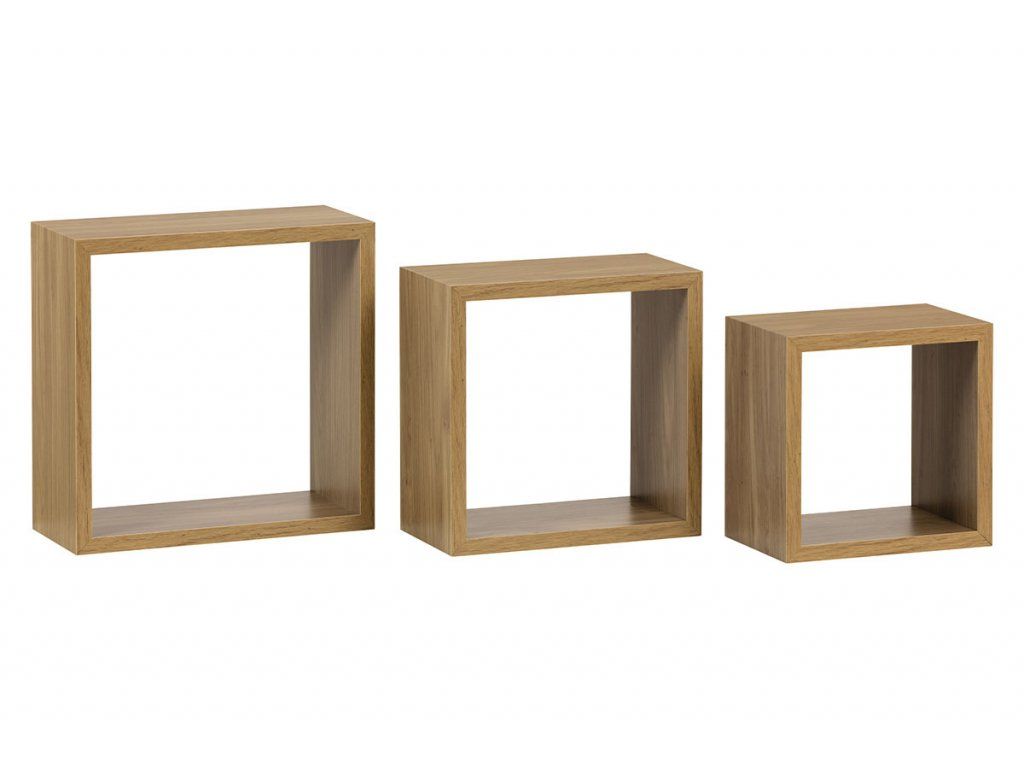 Tato nápaditá sada 3 kusů nástěnných poliček v barvě dubu zaujme na první pohled.