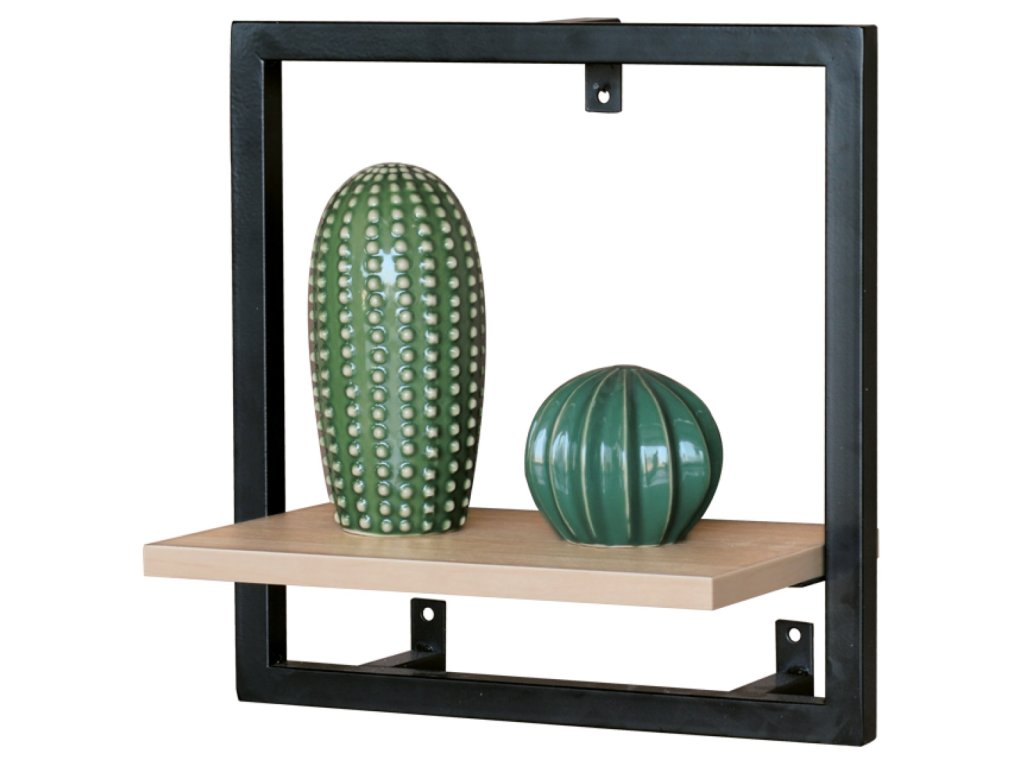 Polička nástěnná 35x20 cm, MDF, dekor dub, kov černý mat