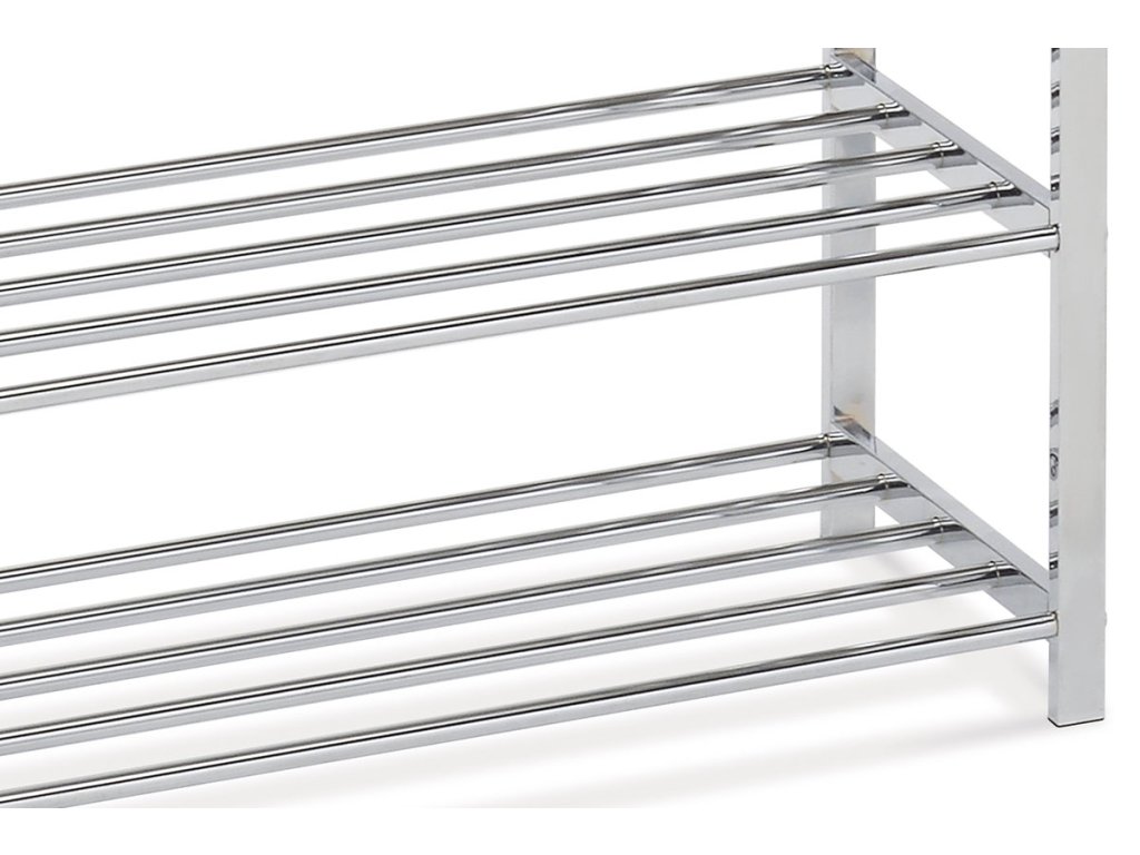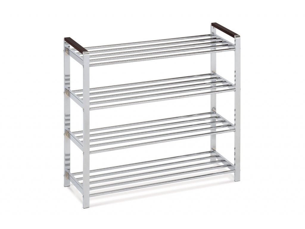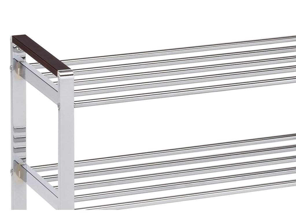 Moderní úložný regál v barevném provedení chrom s detaily v barvě ořechu.
