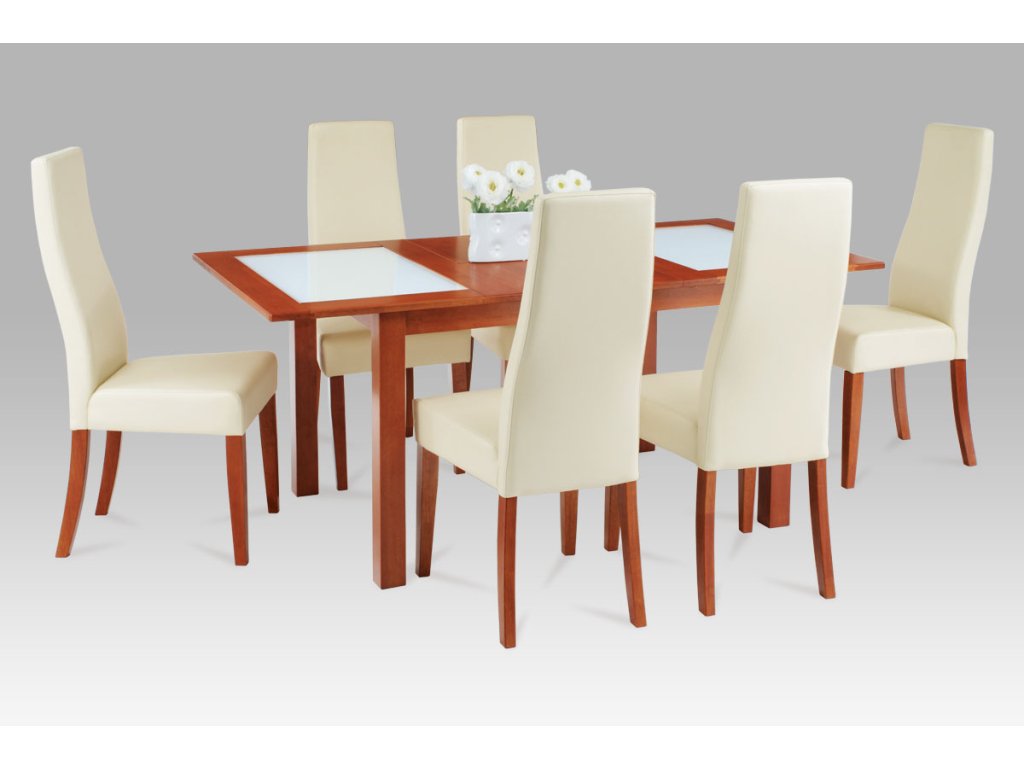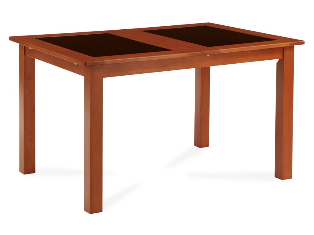 Jídelní stůl rozkládací třešeň s černým sklem 130 - 176 x 90 cm